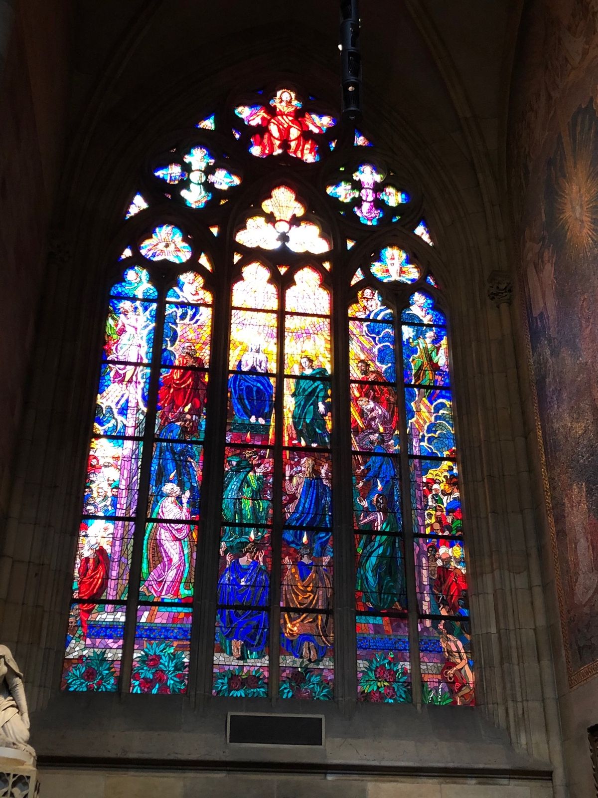 プラハ城。聖ヴィート教会のステンドグラス