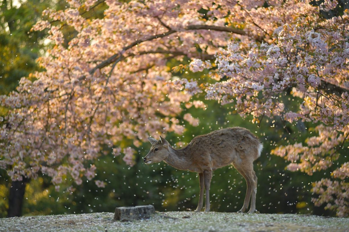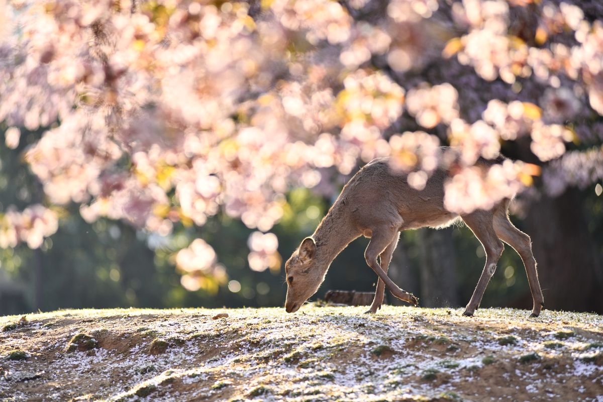 桜と鹿と