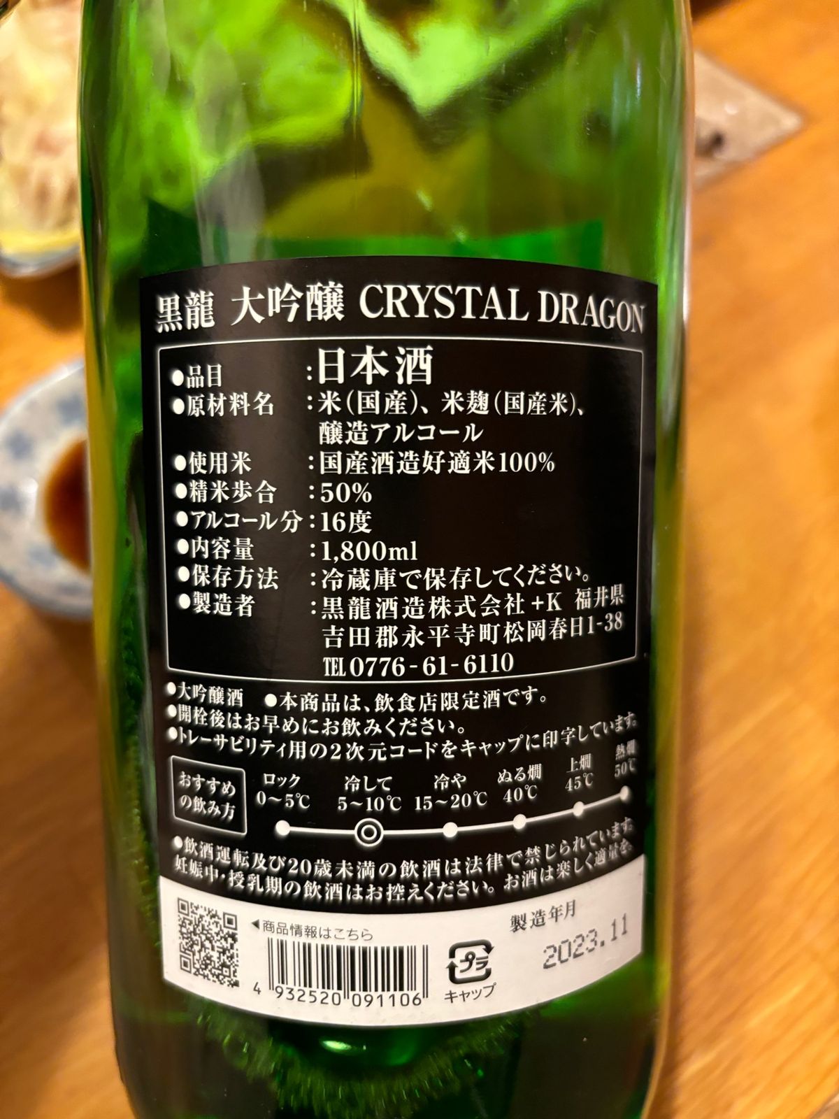 黒龍 大吟醸 クリスタルドラゴン